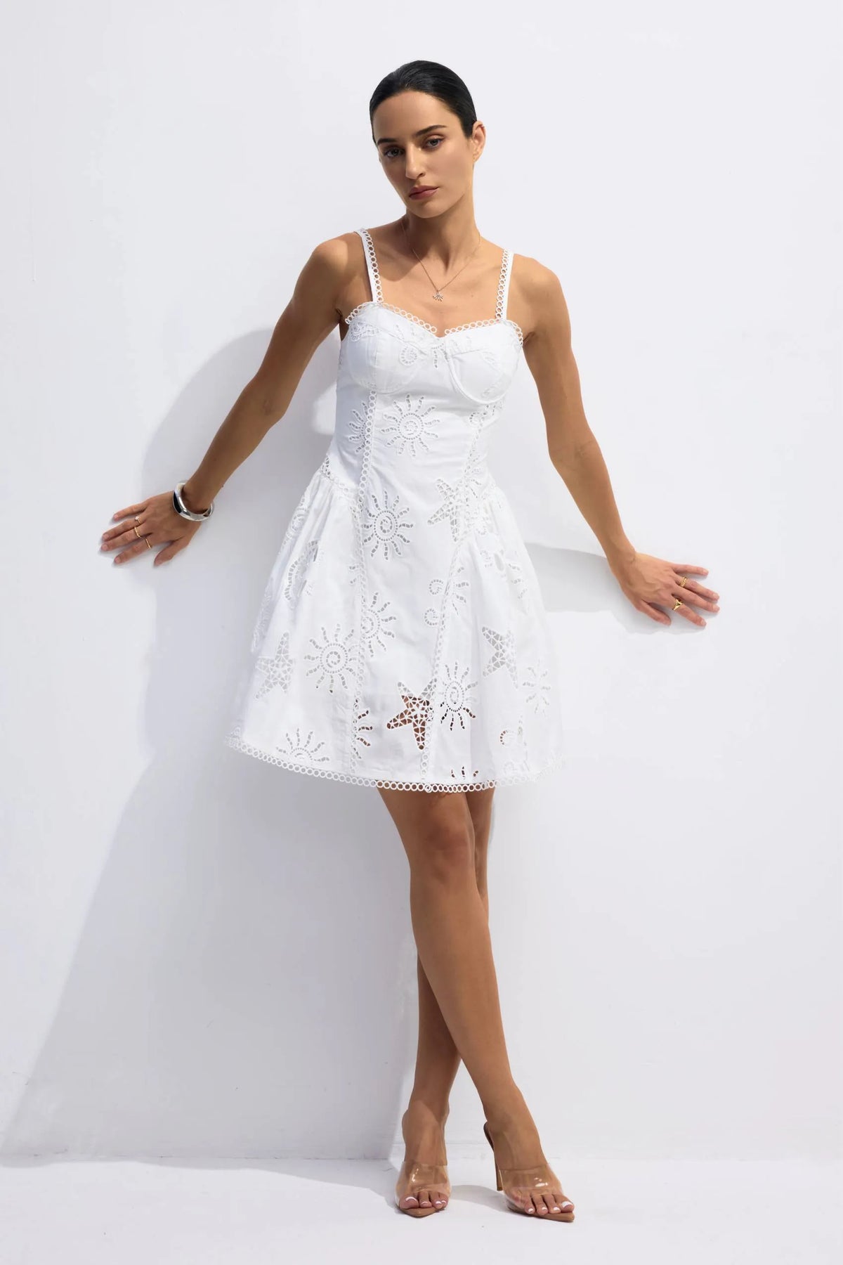Joanna Kalp Yaka Nakışlı Mini Elbise