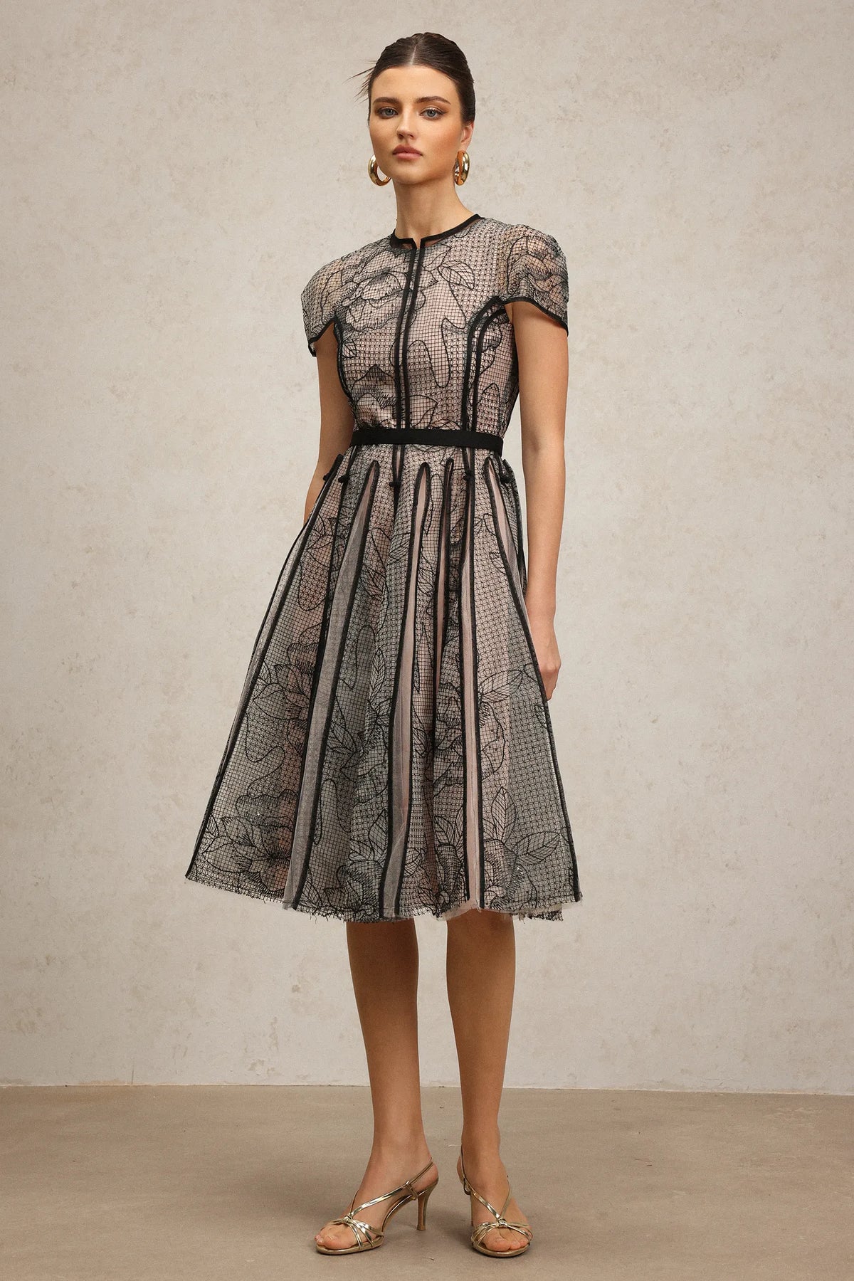 Lisiya Kısa Kollu Jakarlı Midi Elbise