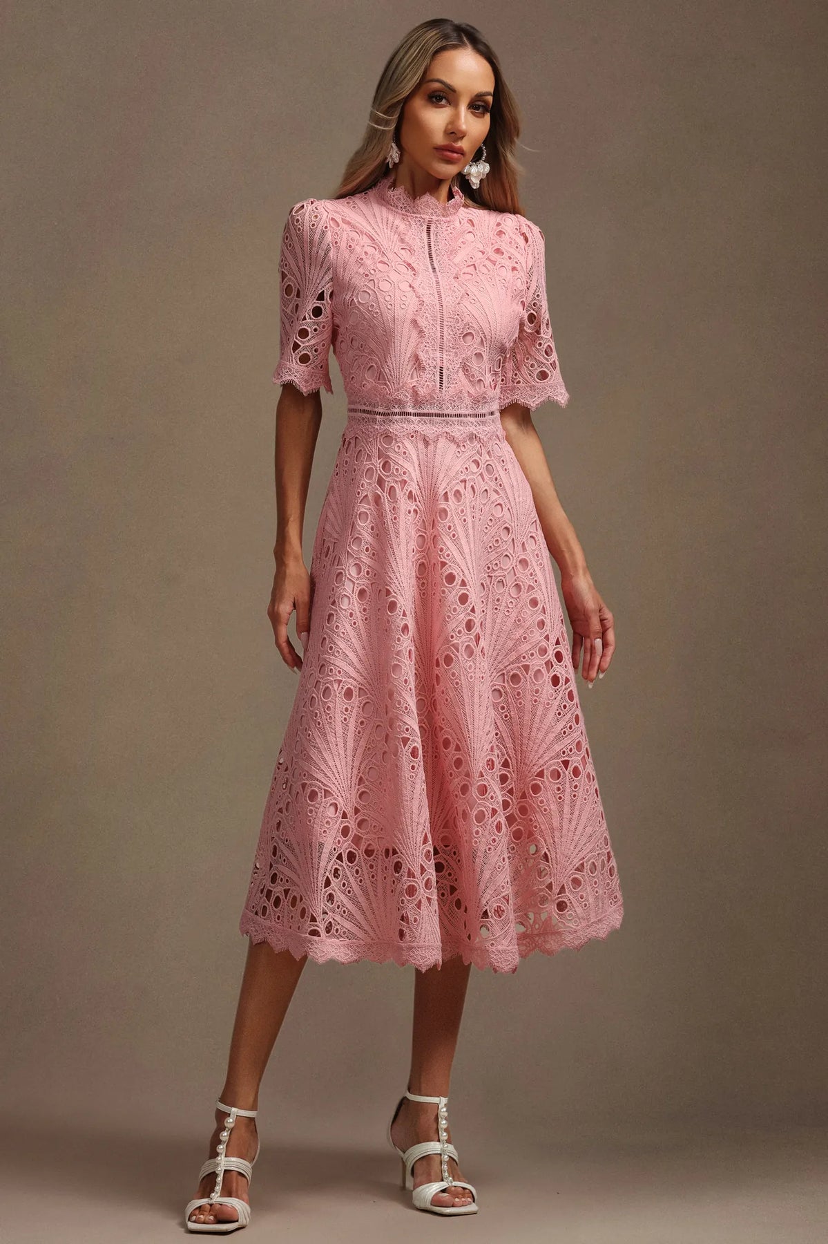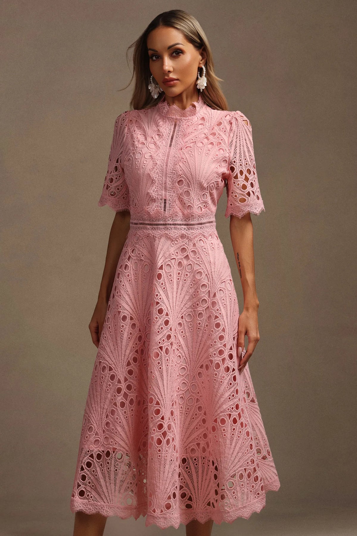 Lzada Kısa Kollu Dantelli Midi Elbise