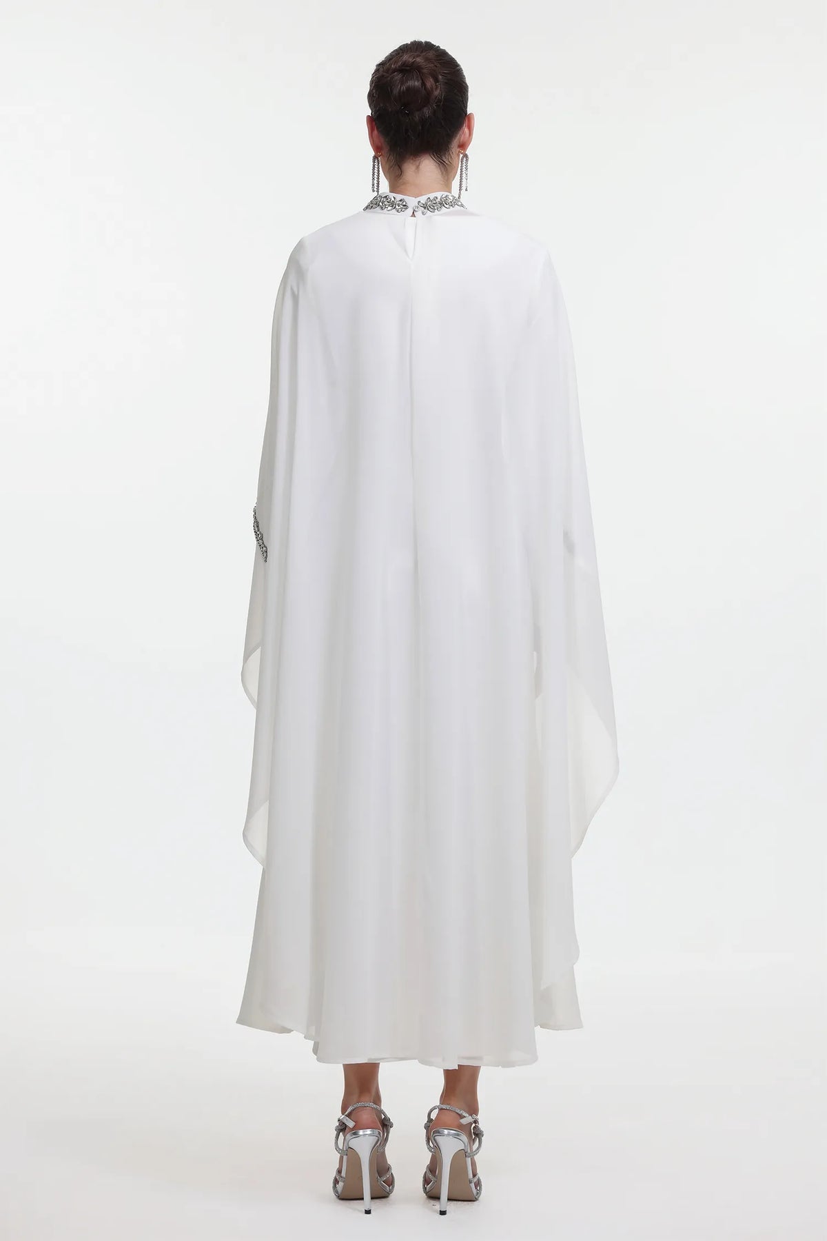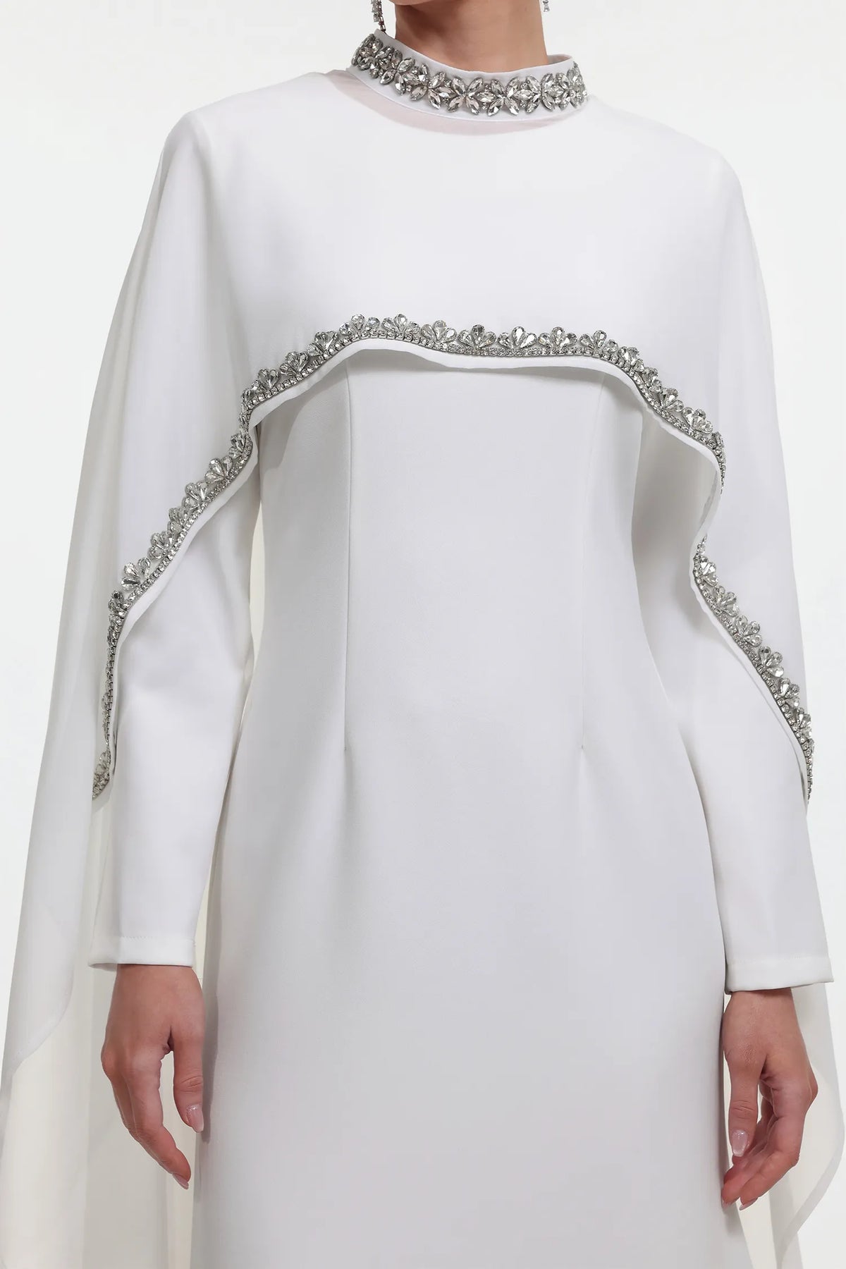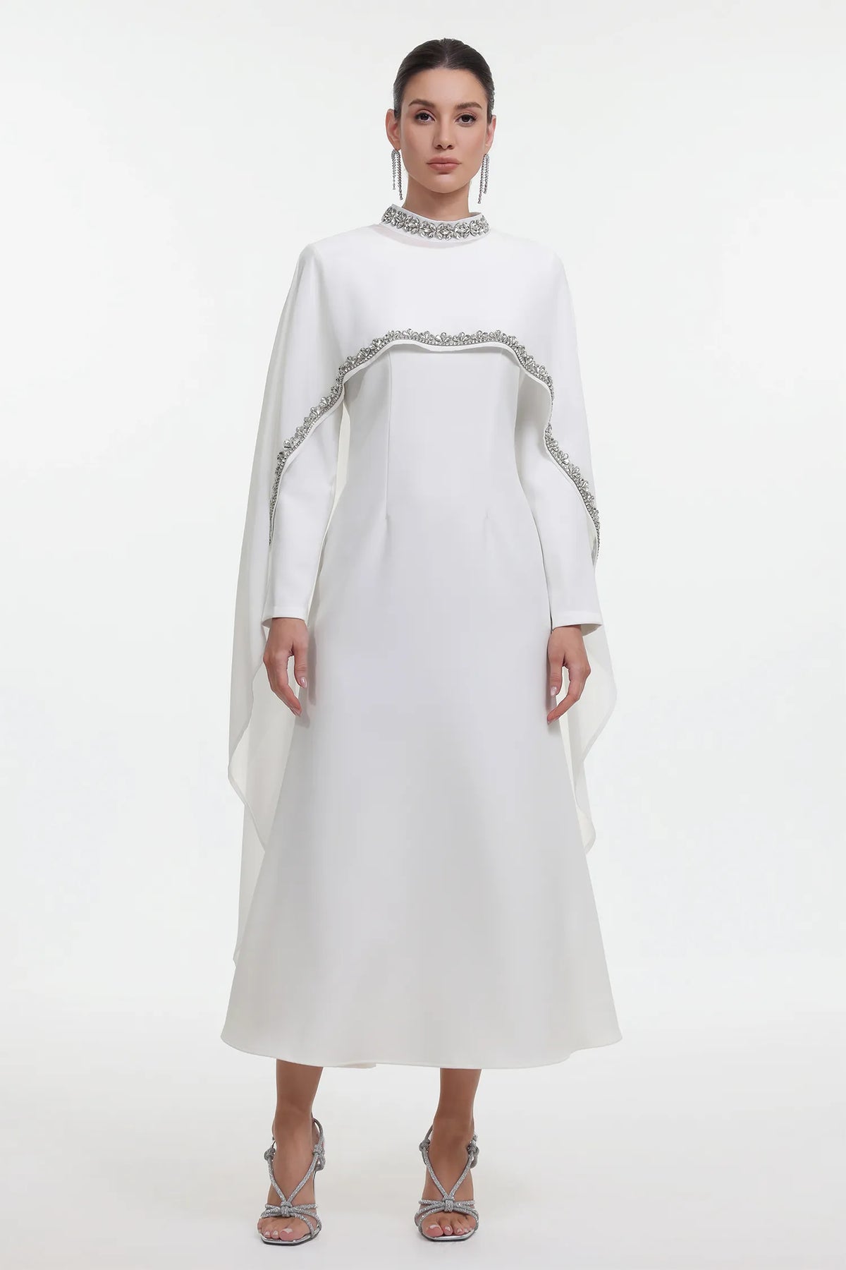 Özel Dikim Taşlı Pelerinli Maksi Elbise