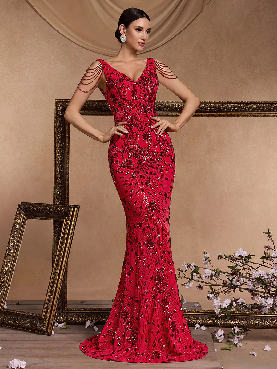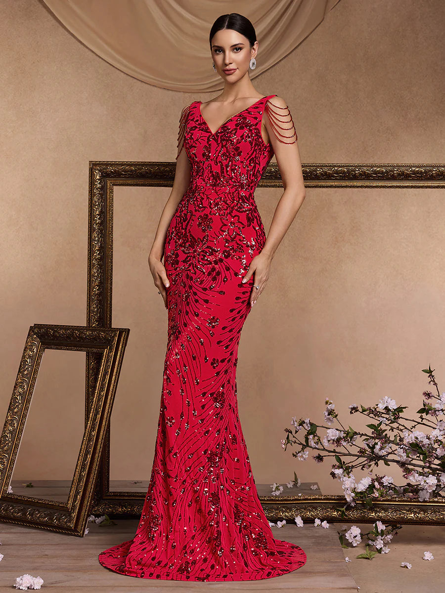 Sirena Çiçekli Tasarım Uzun Elbise