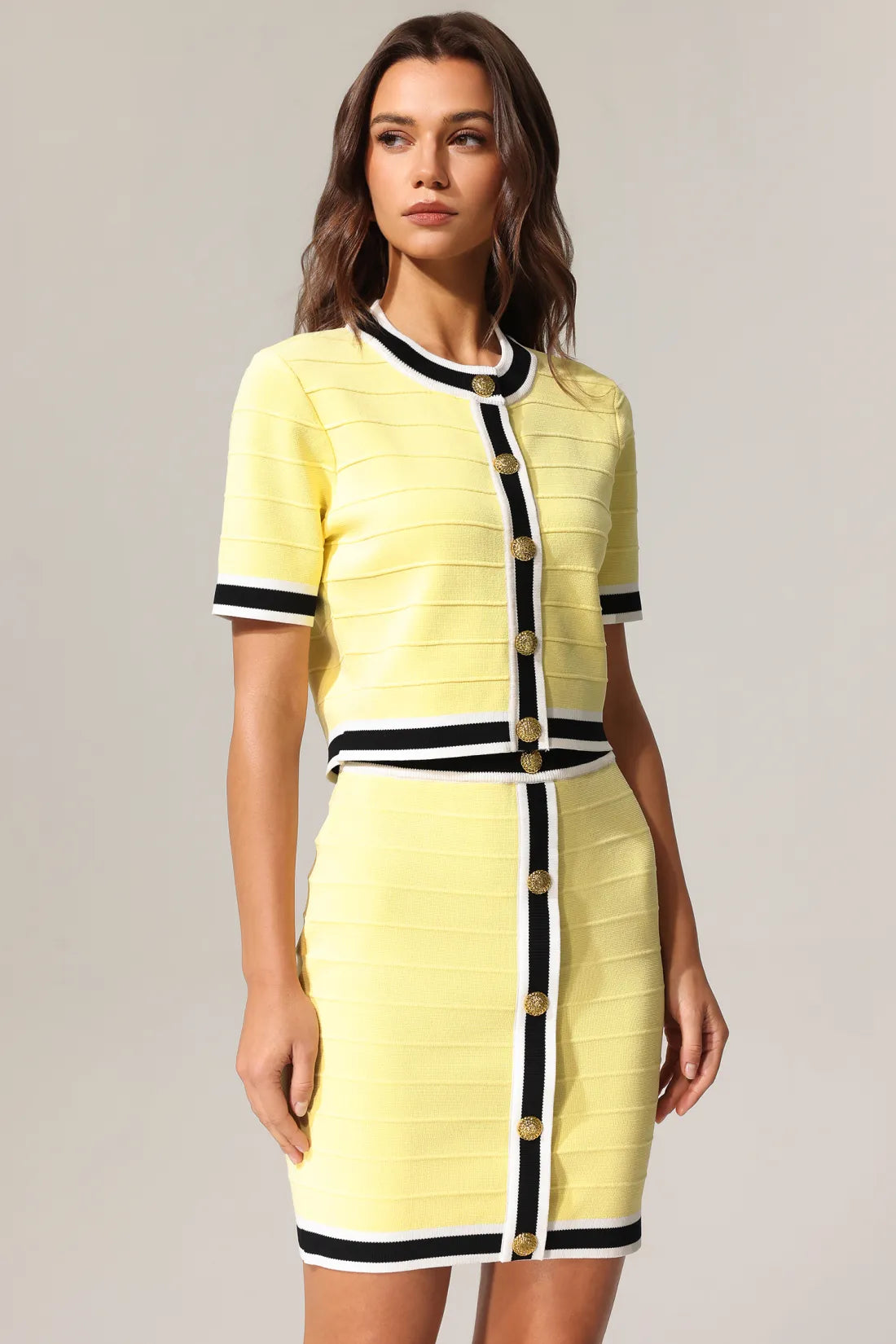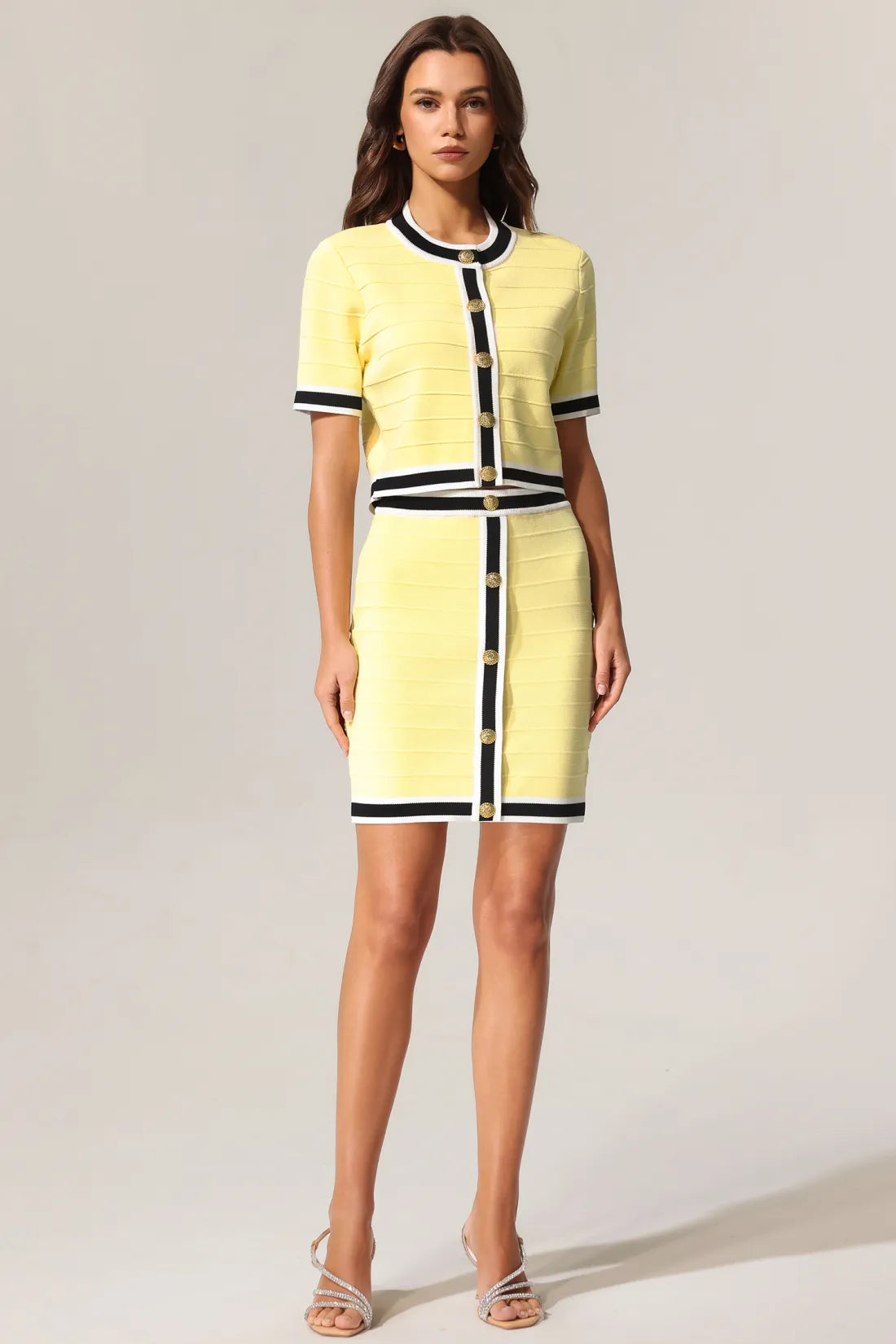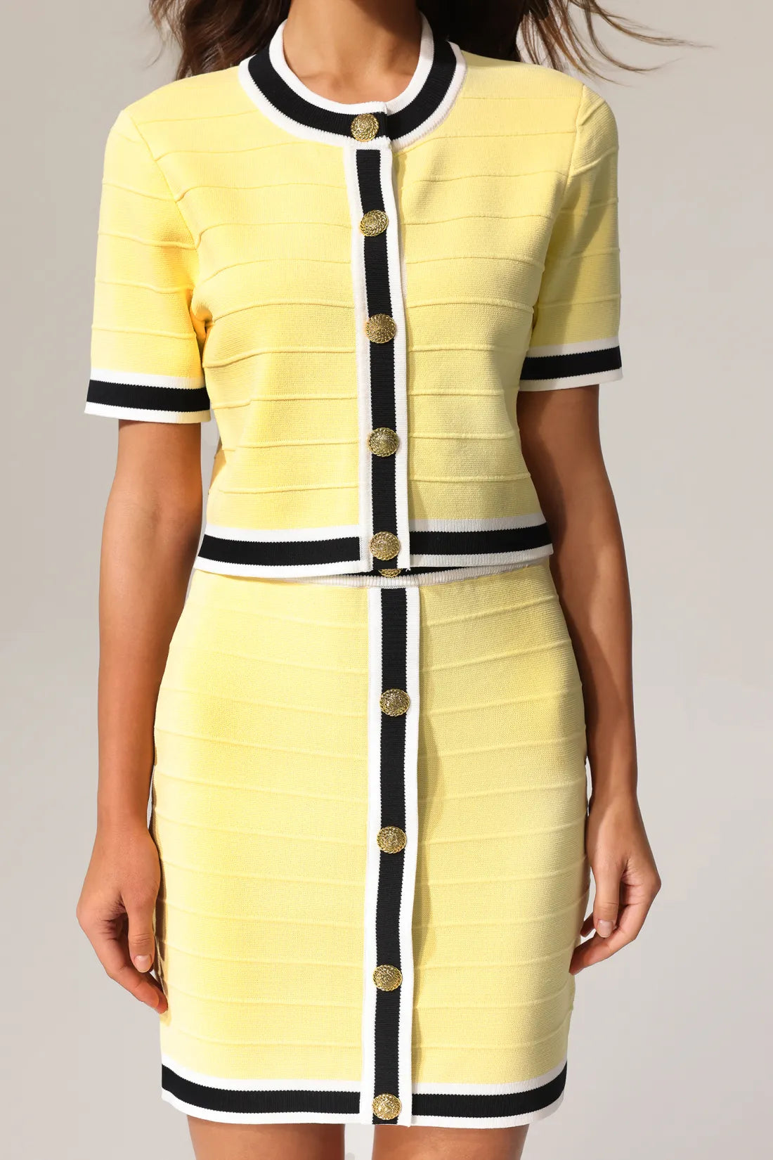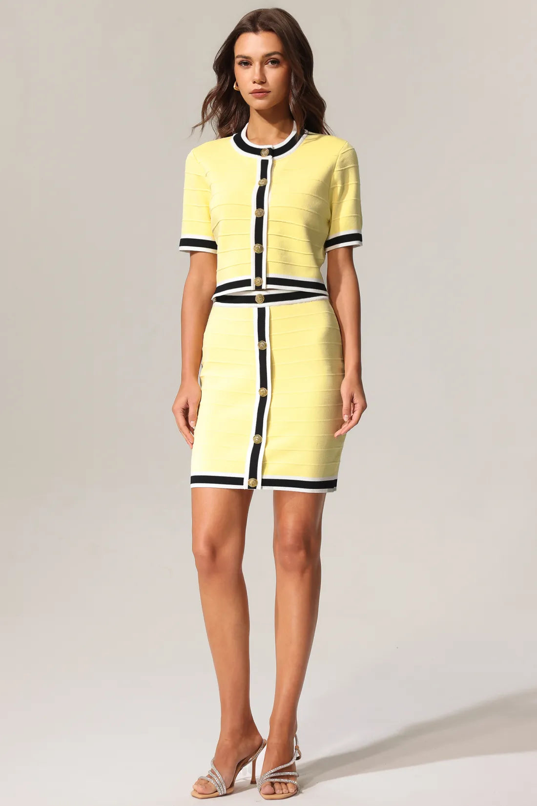 Terela Yuvarlak Yaka Altın Düğmeli Üst Ve Etek İki Parçalı Takım