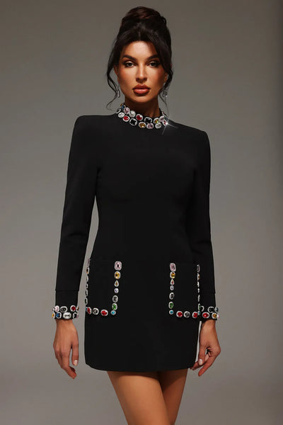 Rode Uzun Kollu Elmas Bandaj Mini Elbise