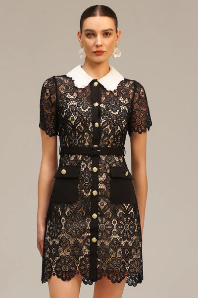 Kassy Yaka Kısa Kollu Dantel Mini Elbise