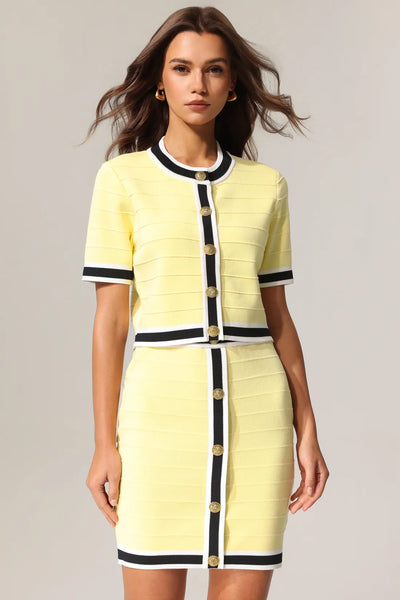 Terela Yuvarlak Yaka Altın Düğmeli Üst Ve Etek İki Parçalı Takım