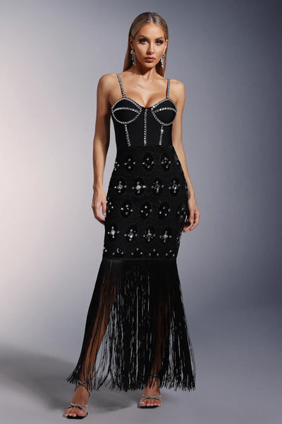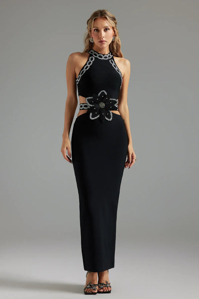 Perrine Parıltılı Kesik Bandaj Uzun Elbise
