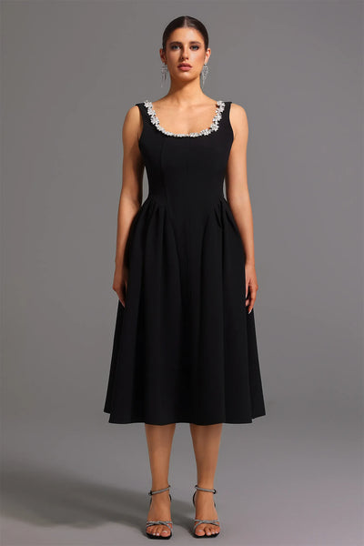 Demere Kolsuz Kare Yaka Elmas Midi Elbise