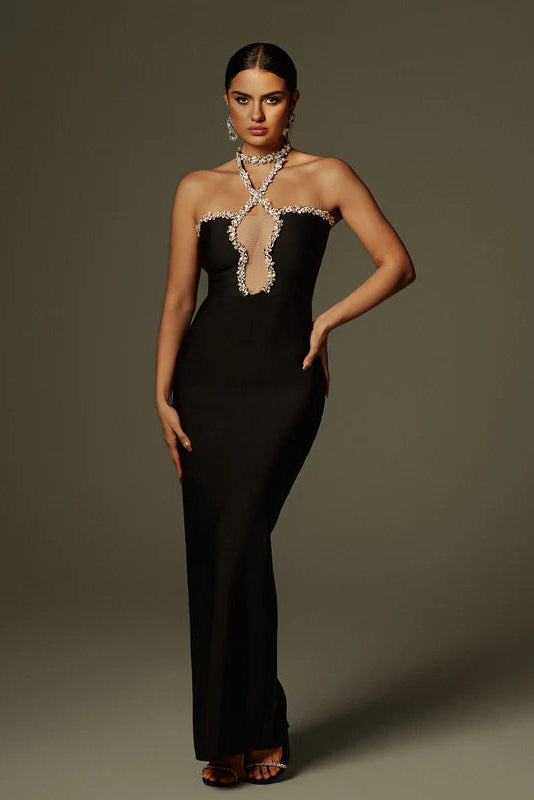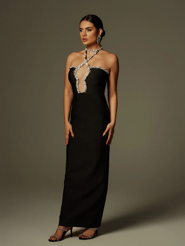 Cornie Premium Taşlı Bandaj Maxi Elbise