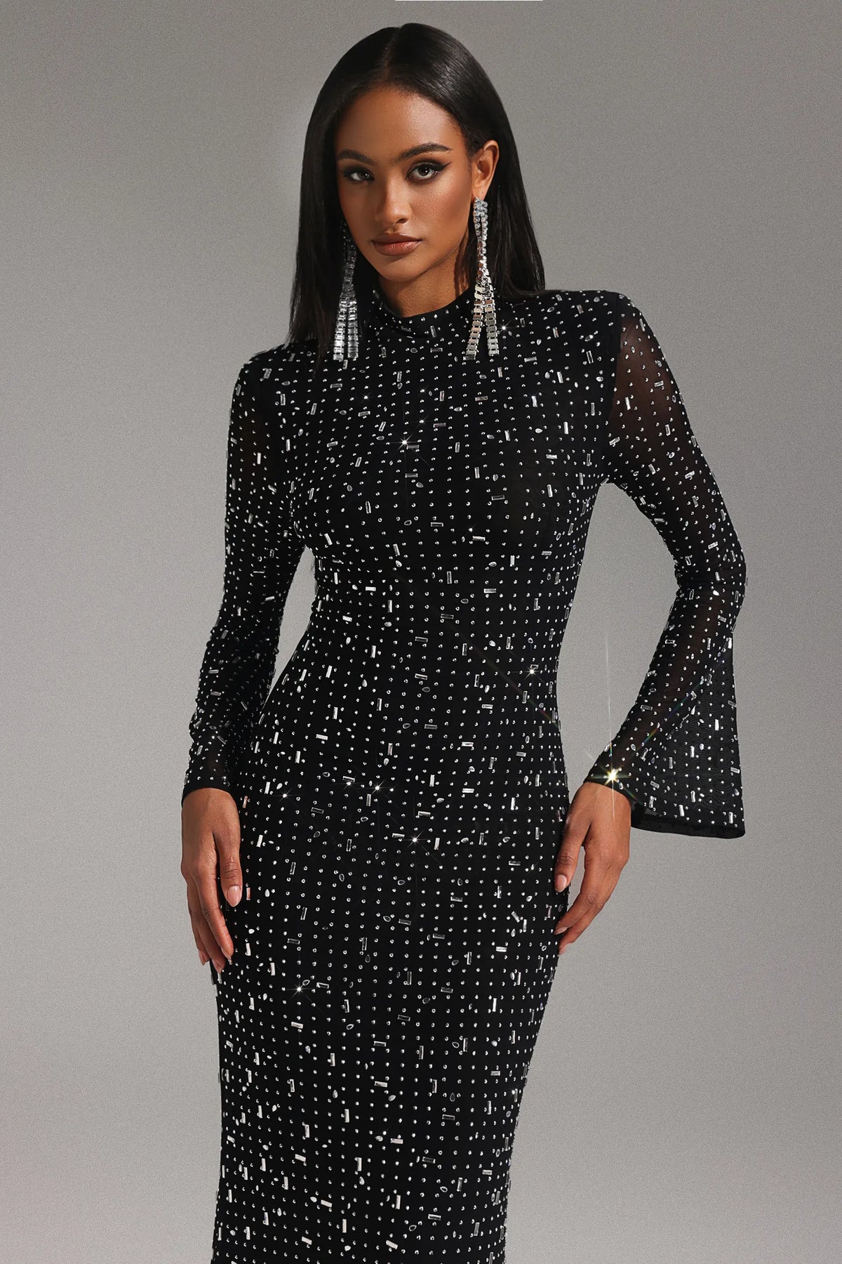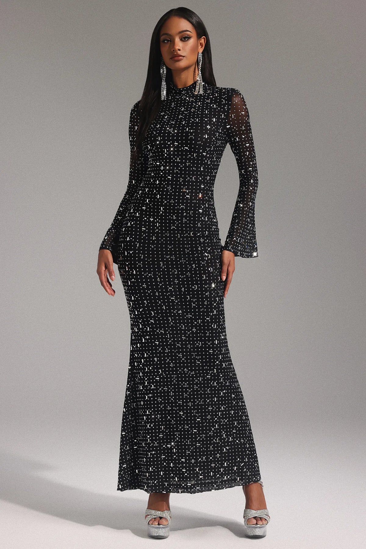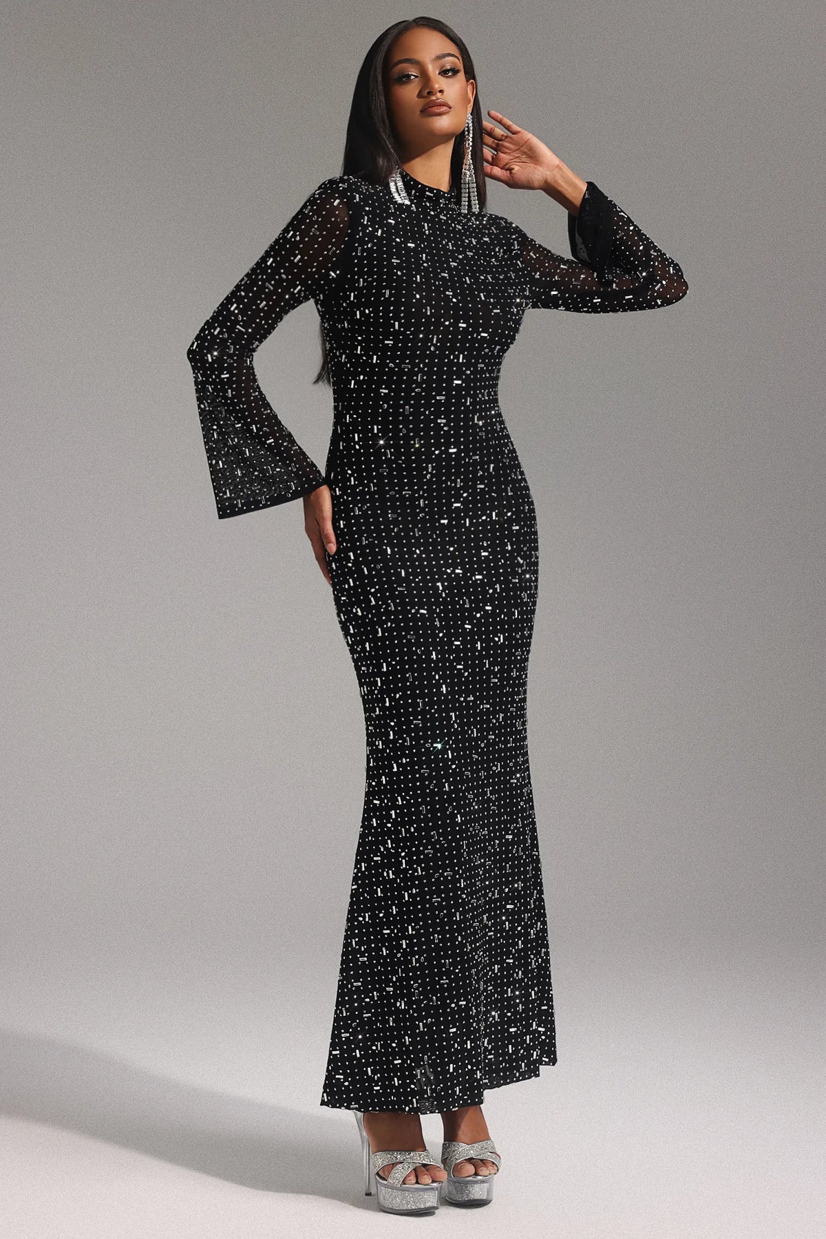 Eurien Choker Uzun Kollu Elmas Maxi Elbise