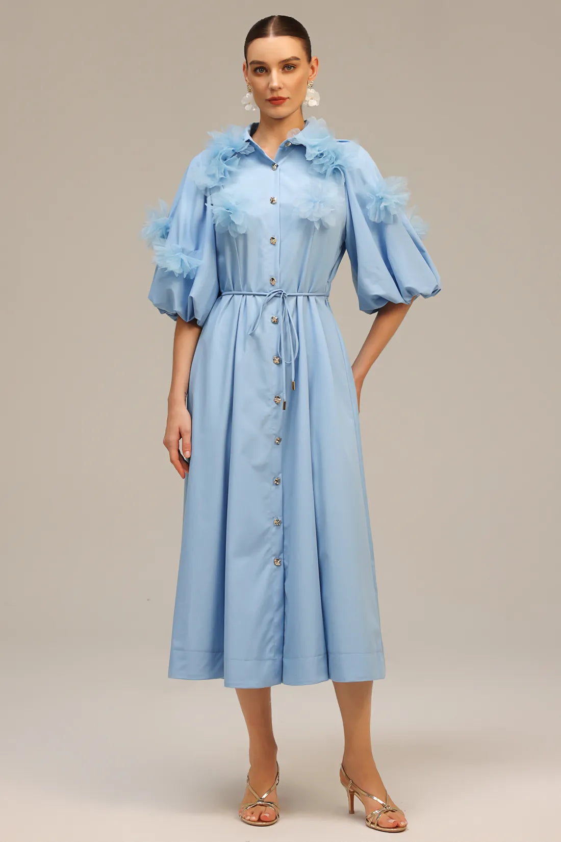 Helena Kısa Kollu Çiçekli Midi Elbise