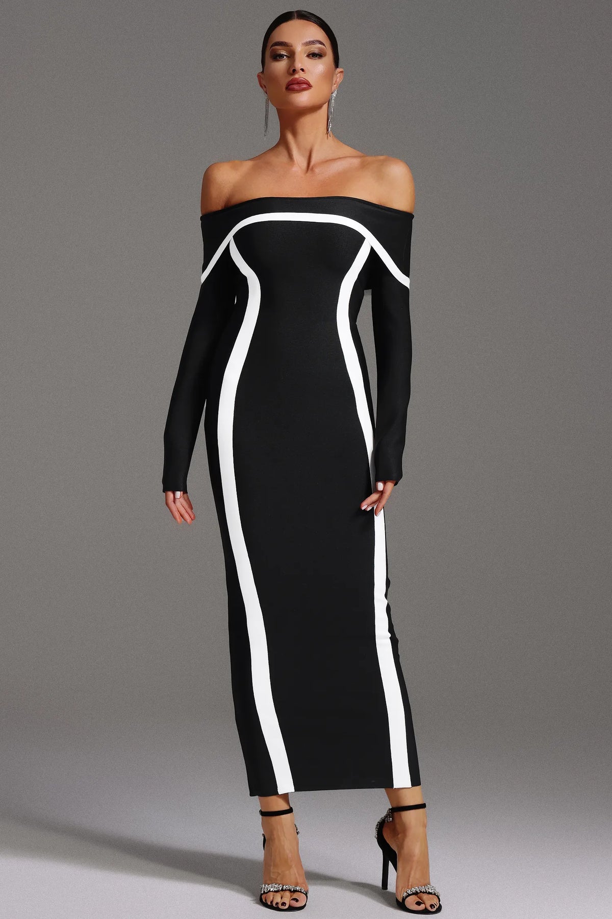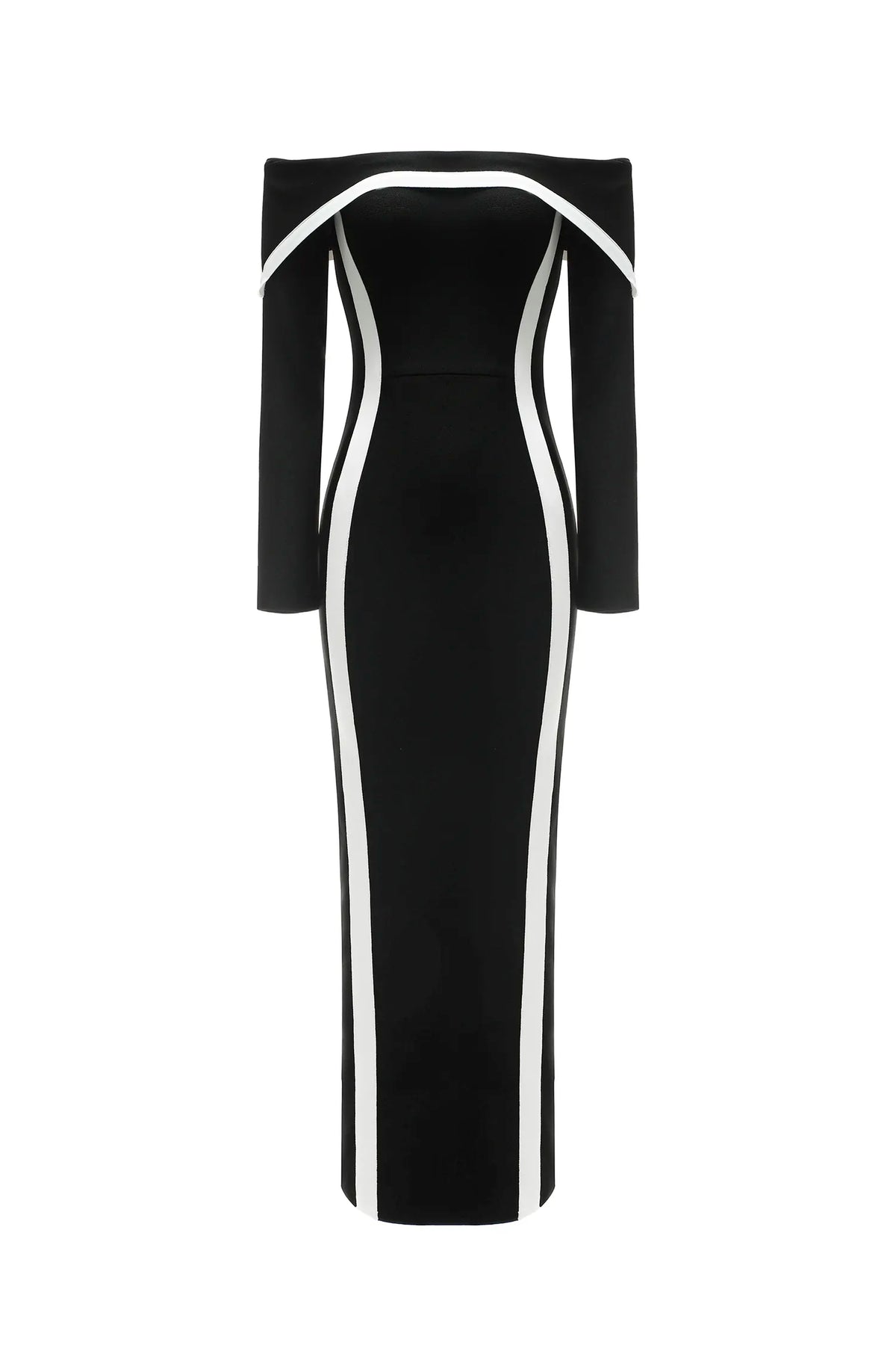 Hilda Omuz Açık Uzun Kollu Maksi Elbise