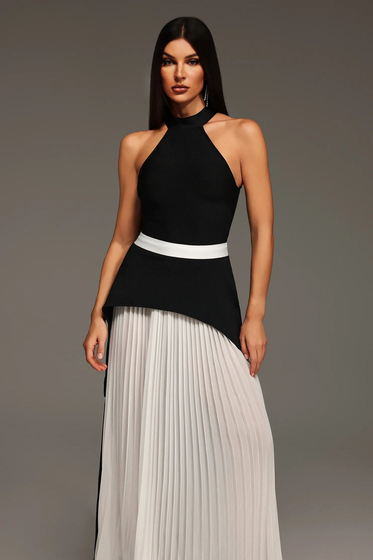 Mila Kolsuz Halter Kırışık Uzun Elbise