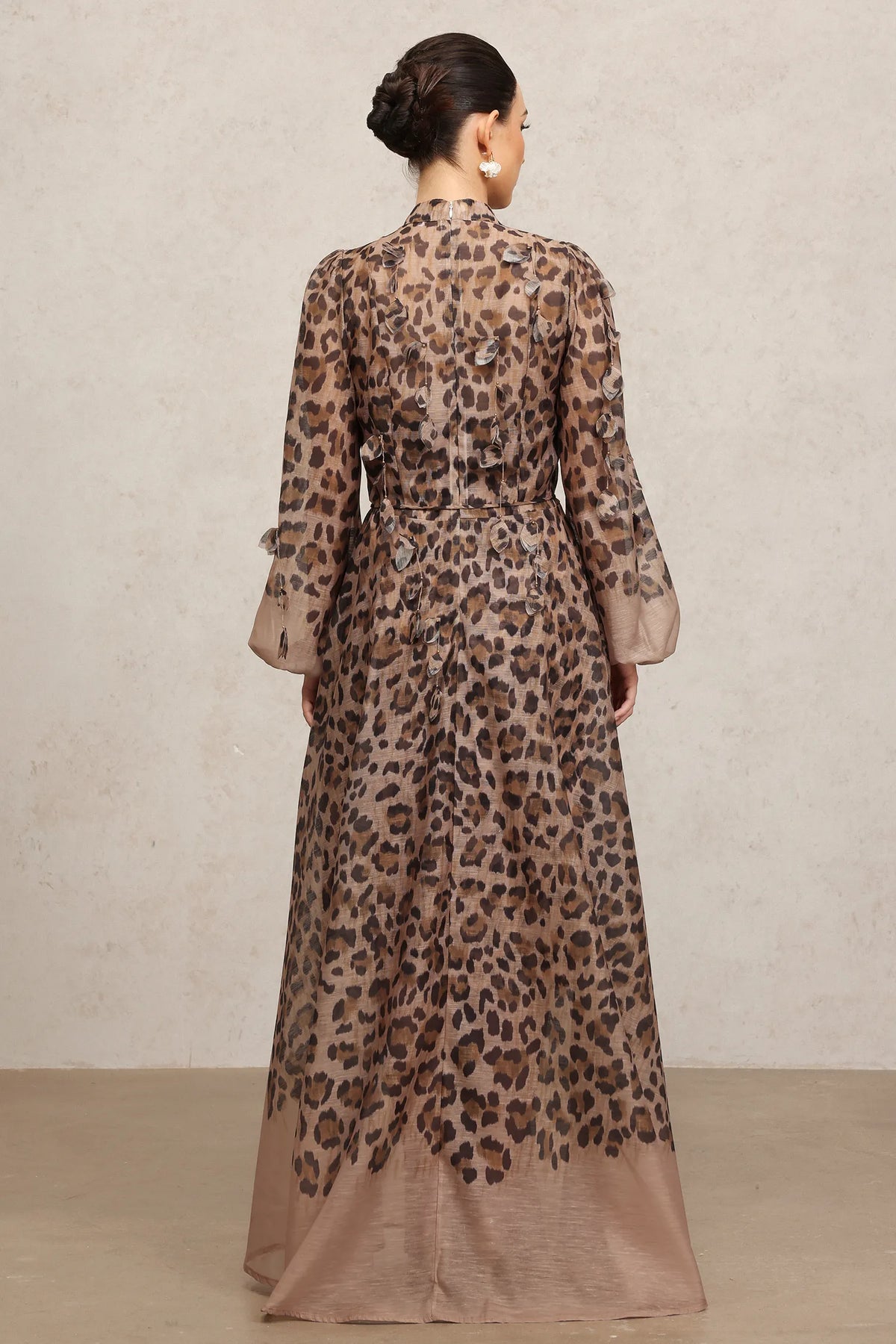 Myra Uzun Kollu Leopar Desenli Uzun Elbise