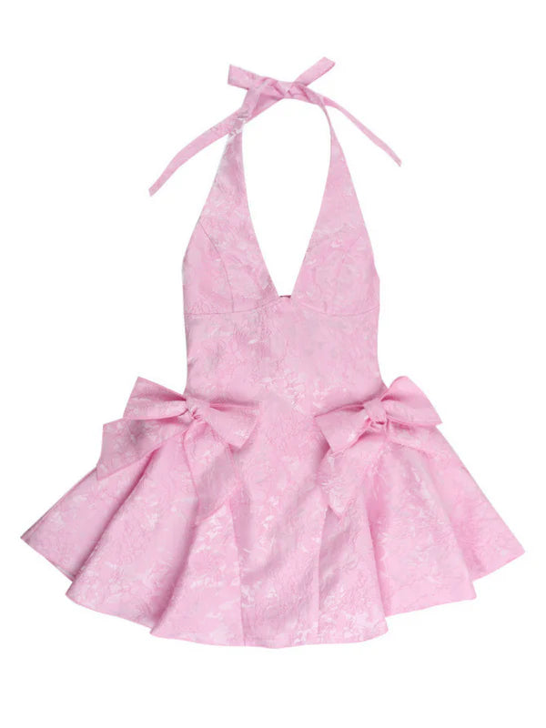 Yaldrex Derin Yaka Fiyonklu Jakarlı Mini Elbise