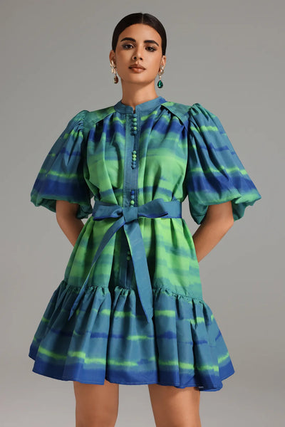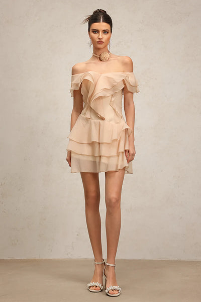 Quanne Omuz Açık Katmanlı Volanlı Mini Elbise
