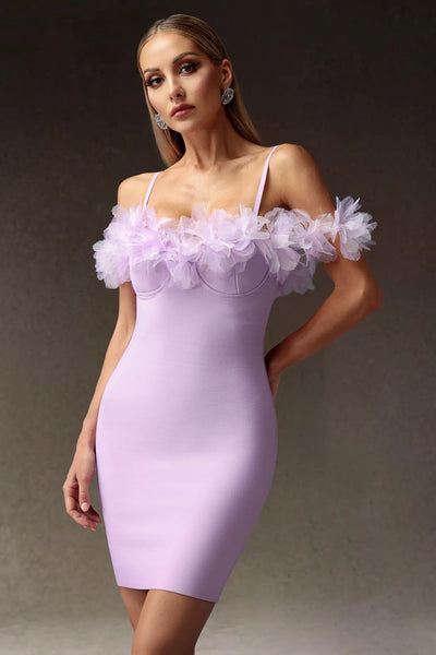 Verney Kolsuz Omuzdan Açık Çiçekli Bandaj Mini Elbise