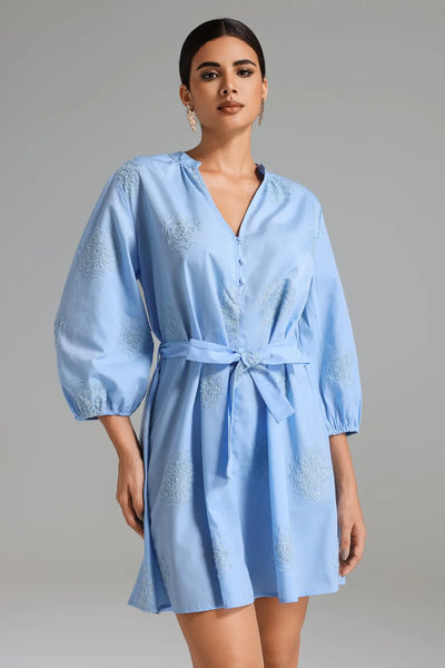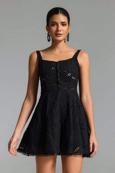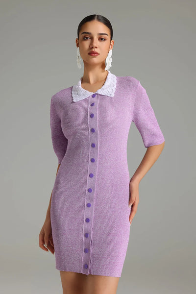 Yuvarlak Yaka Kısa Kollu Elmas Dantel Mini Elbise
