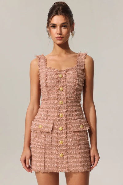 Taliesin Altın Düğmeli Askılı Tweed Mini Elbise