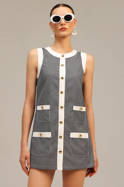 Kısa Kollu Altın Düğmeli Mini Elbise