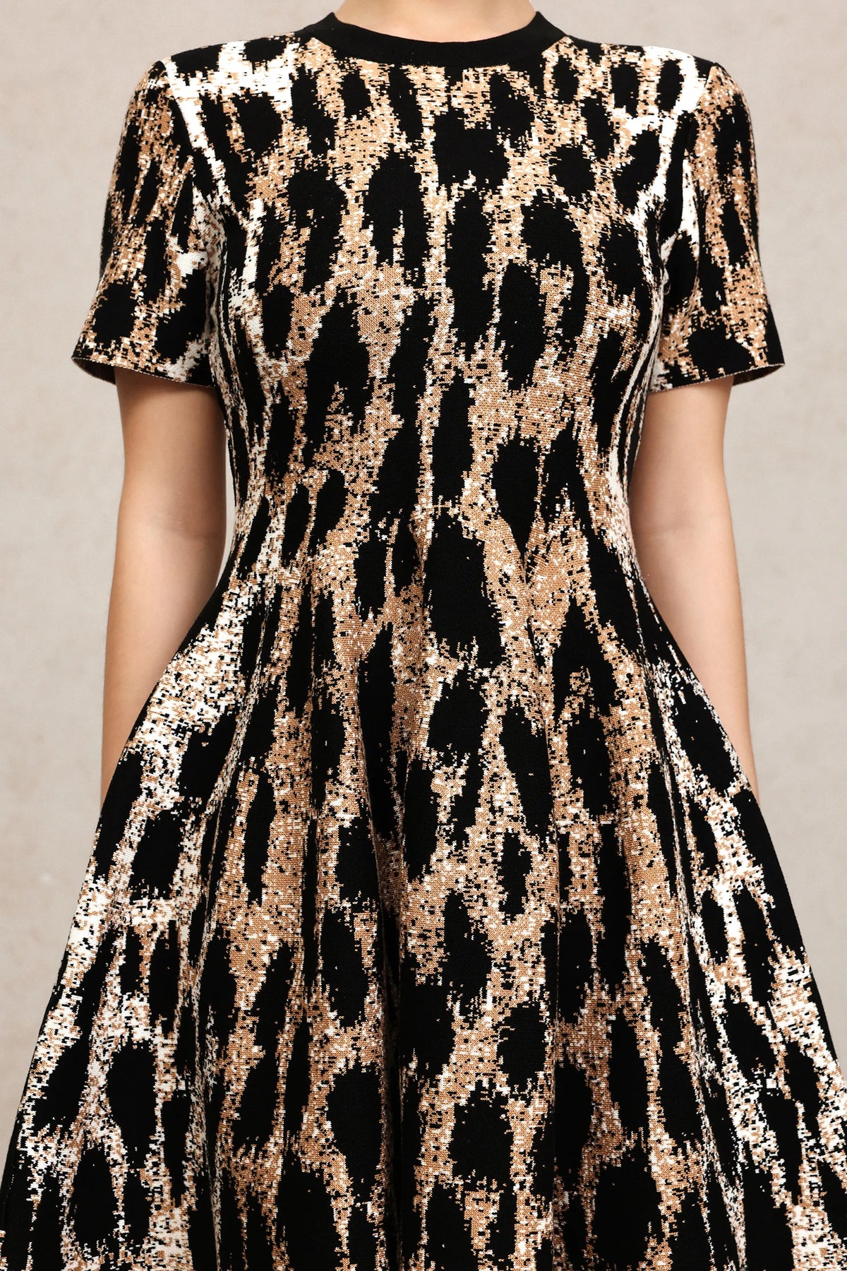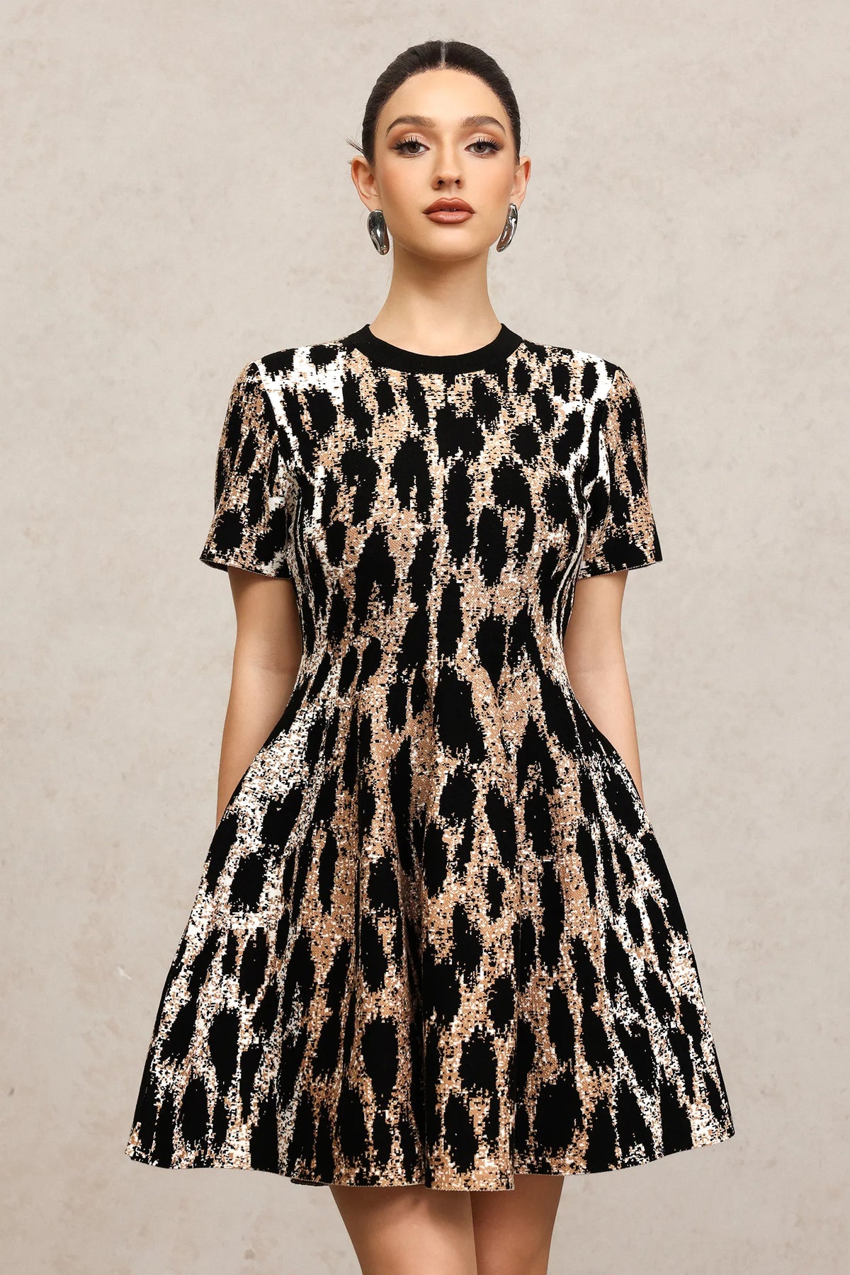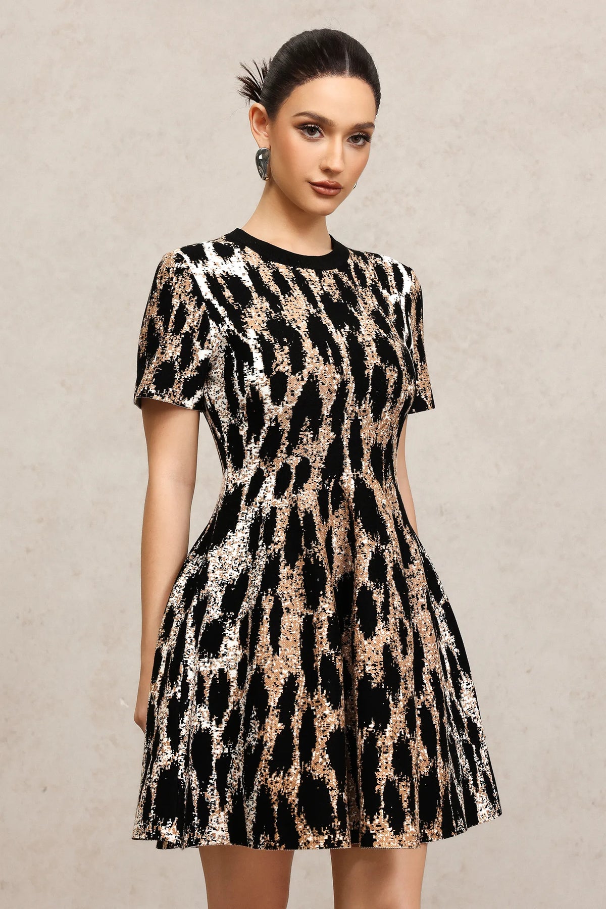 Indi Kısa Kollu Leopar Desenli Mini Elbise
