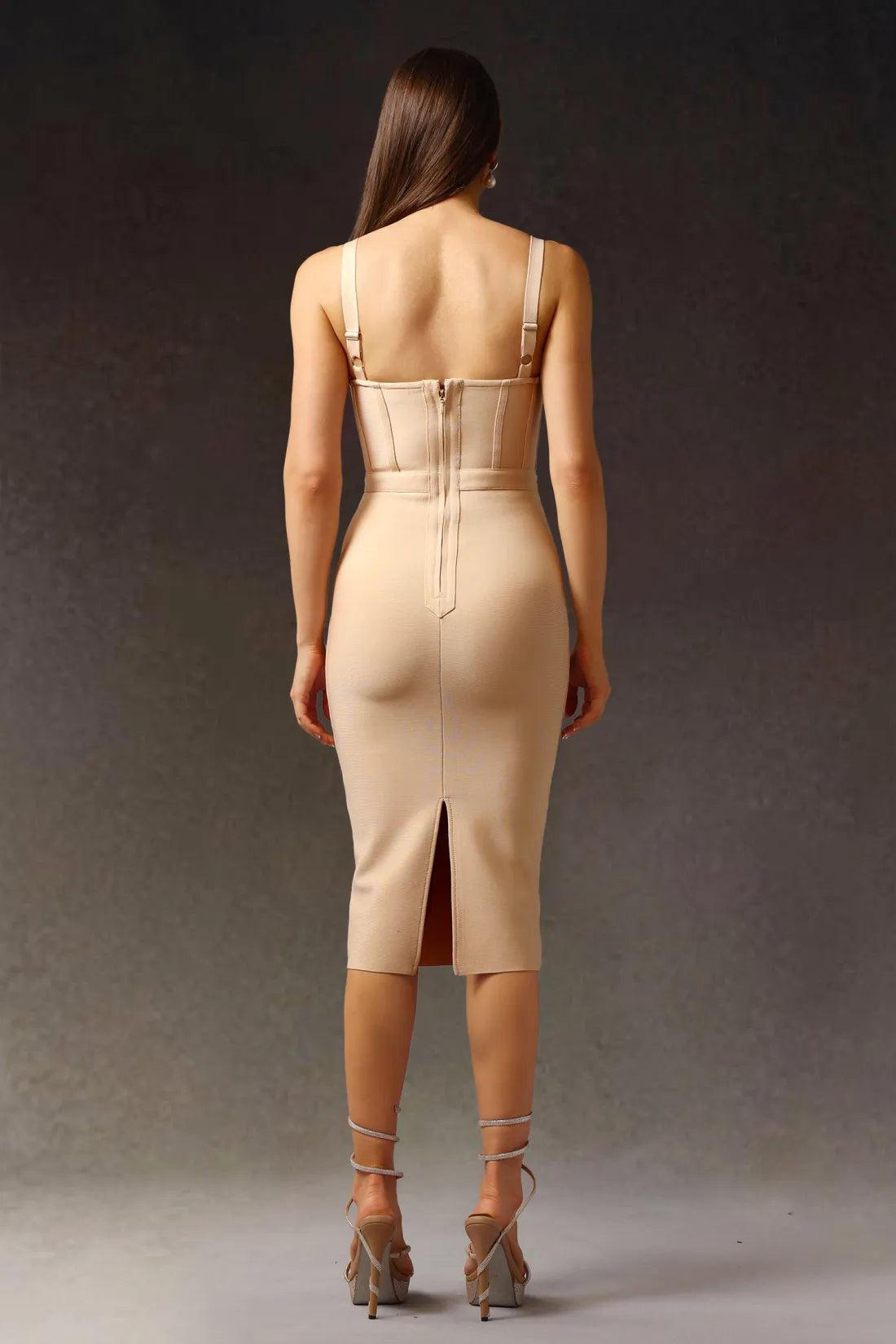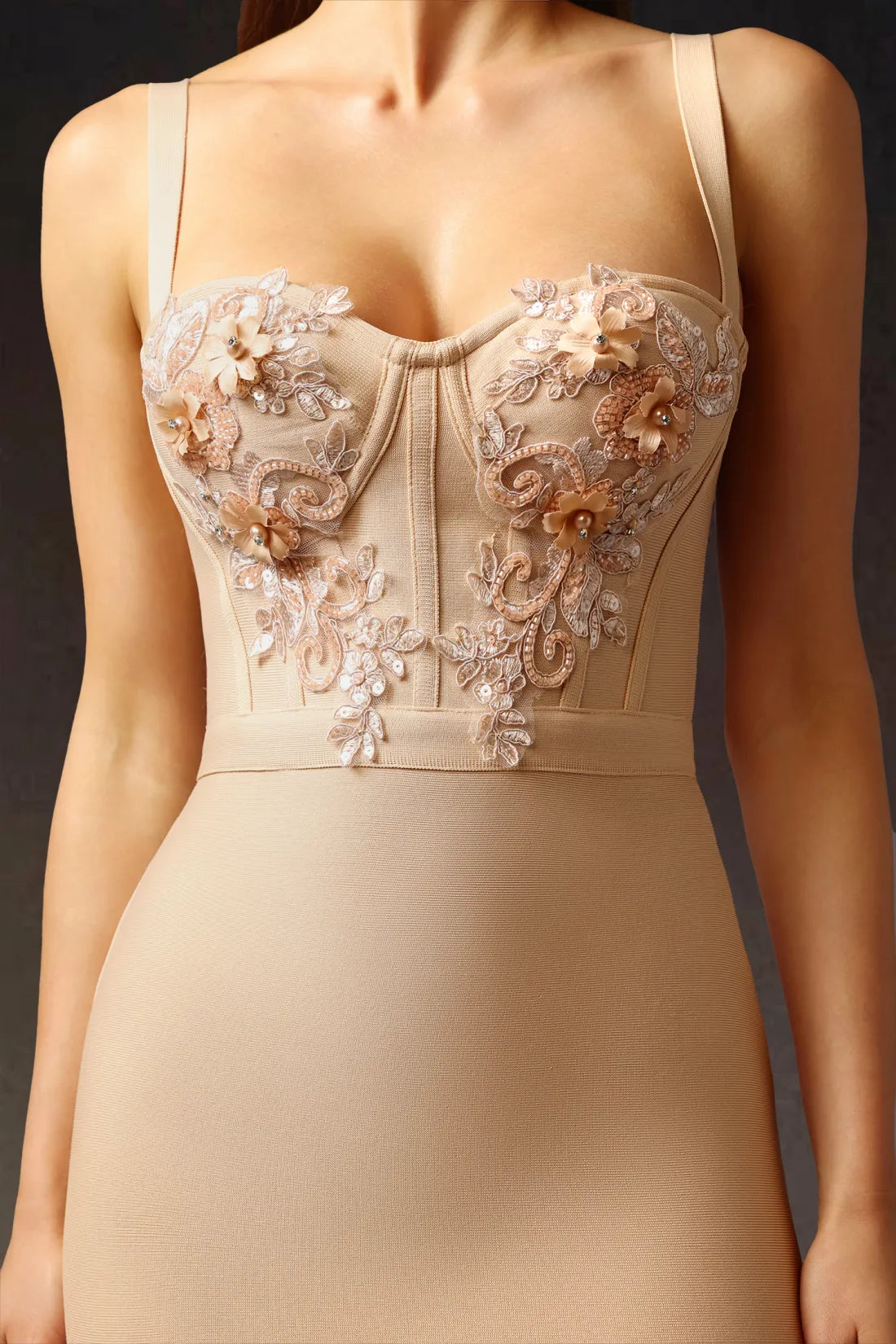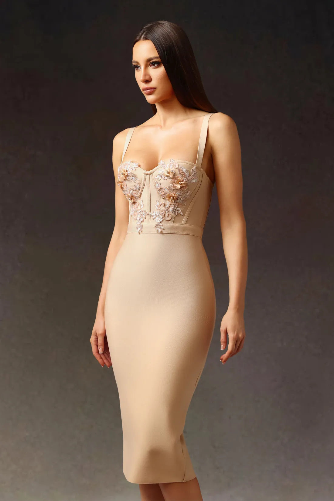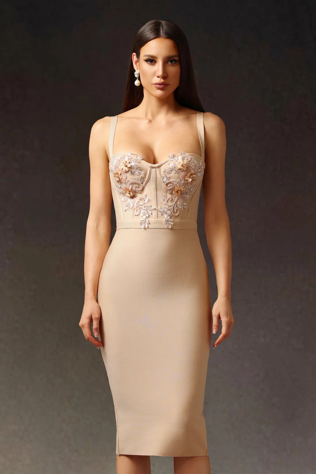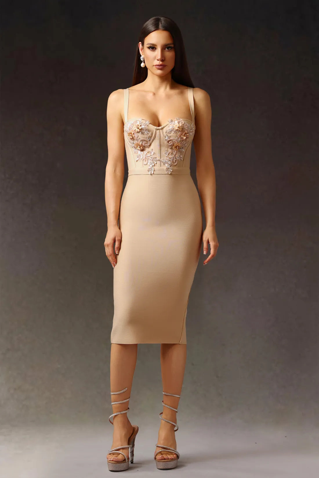 Euran Kolsuz Çiçekli Bandaj Midi Elbise